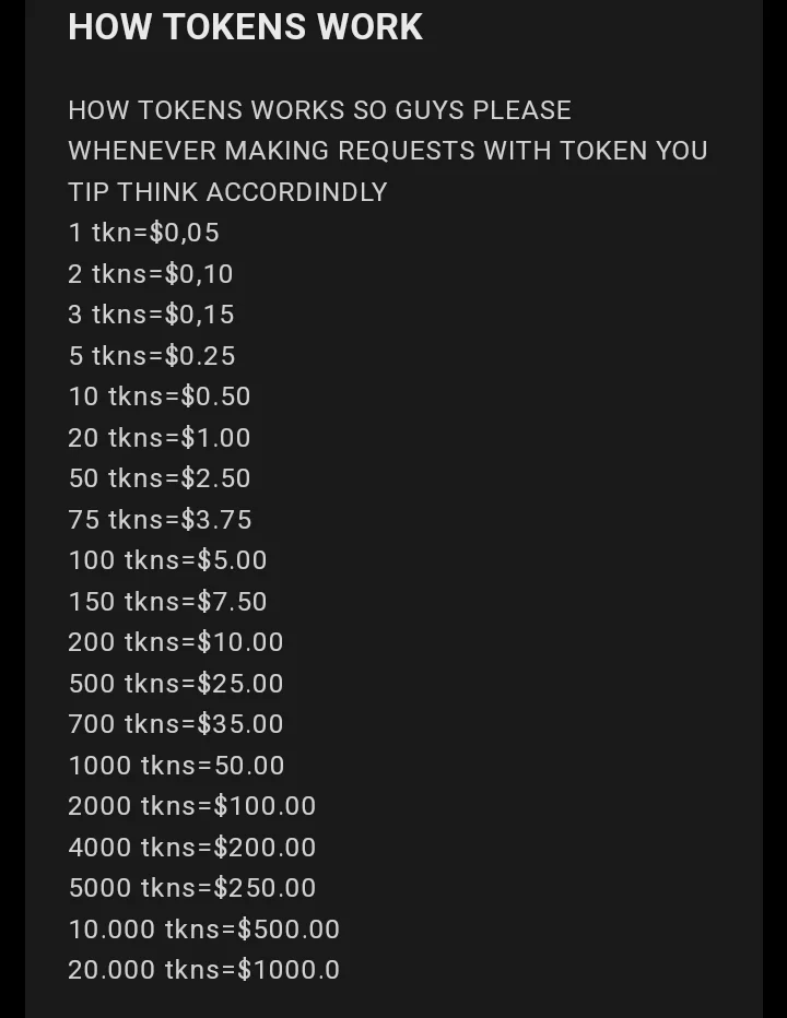 ❌️NB : Do not demand without tip. ANY TOKENS ARE APPRECIATED